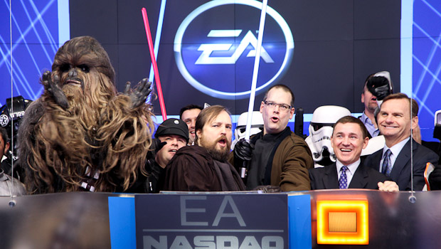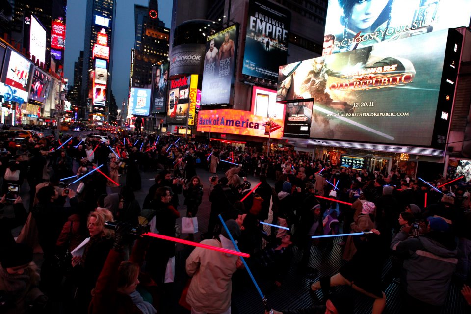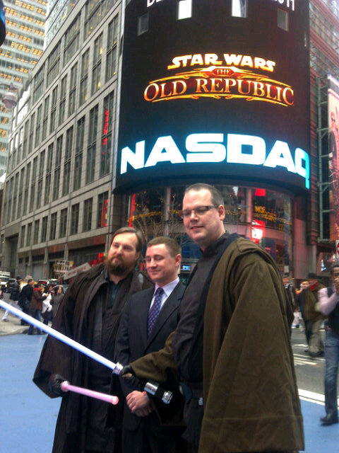 The day Star Wars: The Old Republic got officially released has come and gone. There were many great events to celebrate this momentous occasion an we decided to compile the media from several of those. What you will see below are the documentary video about the making of the Old republic that was released on the official site. There are images from the New York and Austin midnight launch events at Best Buy stores. There was a Freeze Mob in Times Square depicting the epic Empire versus the Republic conflict. Bioware founders also rang the NASDAQ starting bell. There is the SWTOR TV ad available for your viewing pleasure included as well. On to the media…