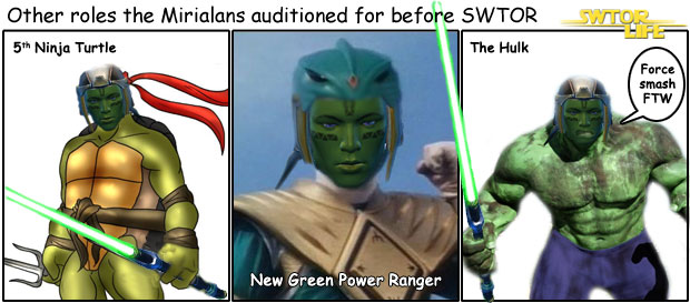 I had several ideas for a comic after this Friday’s update on the new playable species in TOR. I let it cook for a day or two and I had an epiphany this noon. This is probably the quickest made comic in the history of my webcomic production. Everything just fell into place. Now tell me, who else do you think the Mirialans would be a good match for and I’ll create a followup comic (leave your creative responses in the comment section bellow).