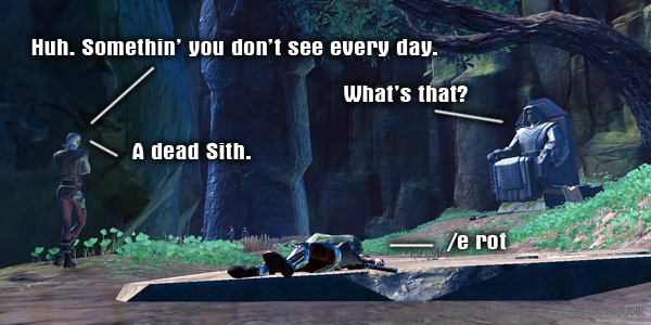 Here are a few things I’ve noticed. First, I play Republic, and on a PvP server. As I roam the sands of Tatooine, I see very few Imperial players. I am not sure if it’s just how the quests are spread out, but as I leveled on this planet, and coming back for a visit to refresh my memory, I saw very few Imperial players. Continue Reading »