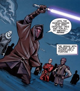 As the Republic military suffered defeat after defeat, they finally made an official petition of aid to the Jedi Council. The council remained firm in their stance, they refused to enter the war for fear of an unknown threat that could be manipulating the Mandalorians and forbid any Jedi from serving in the Republic military. Revan, however, was fed up with the Jedi Council at this point. When the details of the Battle of Cathar–where the Mandalorians slaughtered the Cathar people–came to light, Revan used the atrocity to his advantage. In an act of rebellion greater than anything he had ever done before, Revan sent out a full call to arms throughout the Jedi Order. Revan was no longer content with arguing that the Jedi should intervene, he was going to intervene whether the Jedi Council approved or not. Hundreds of Jedi answered Revan’s call,and the Council reluctantly put out arrest warrants for Revan and any Jedi who stood with him.