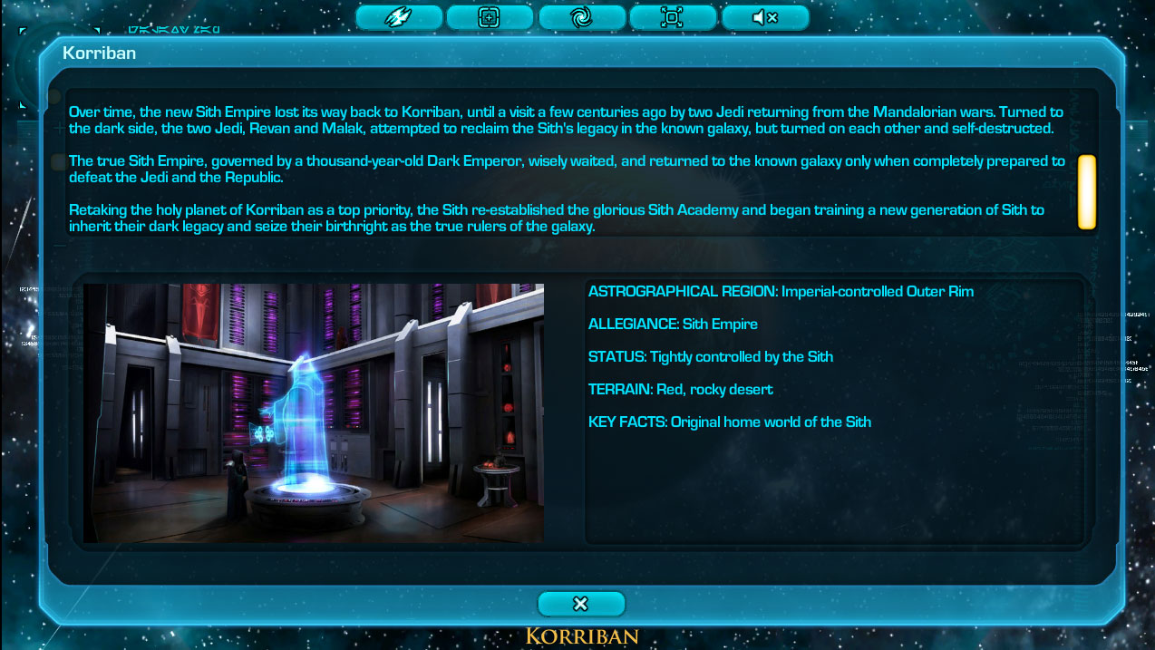 I loved the galaxy map in Mass Effect. It was just Sci-Fi enough to make my nerdy senses tingle. We heard before that there will be a similar map in The Old Republic as well. This Friday update brings us an unexpected new feature on the official Holonet portion of swtor.com site – an interactive Galaxy Map. This is probably a preview of the map we will find in the game, only you view it in your browser. The interactive map features each of the planets we will be able to visit in-game together with all the information and videos that we could find on “plain old regular” web pages about those planets. There is also a special section dedicated to personal spaceships each of the classes will be getting. You can view details about each of the spaceships as well as look at their 3d models (and rotate them to see every detail from every angle). Although this is just a fluff update, I enjoyed it nevertheless. The feature is just that cool.