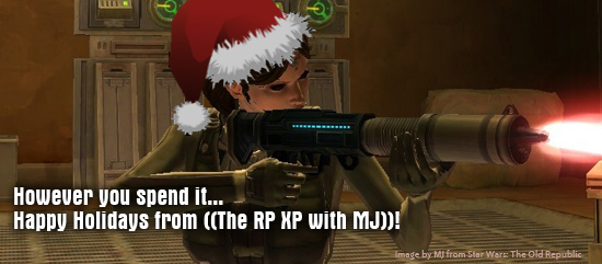 ((The RP XP with MJ appears on Fridays right here on www.swtor-life.com. If you’d like more information about RP, want to know how to get started, or if you’re looking for a supportive RP Guild, drop MJ a line at swtorrp(at)gmail.com. You can also follow MJ on Twitter @MJswtor. Happy holidays, and May the Force be with you!))