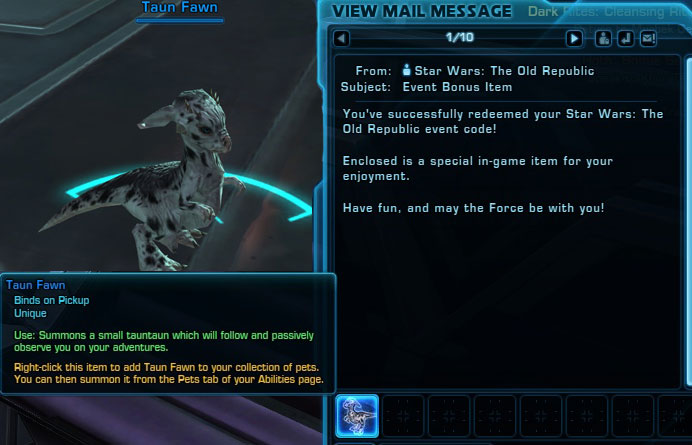 But the gifts don’t stop there. If you currently have a level 50 character you will be receiving 30 days of free game time. That’s right, a month of free time just for having been on of the many dedicated players of the game. You still must meet all the criteria listed for the Tauntaun pet, with the slight addition of having a level 50 character as of noon today. It’s a pretty sweet deal and it’s BioWare’s way of giving back to the players who have shown the most dedication to the game.