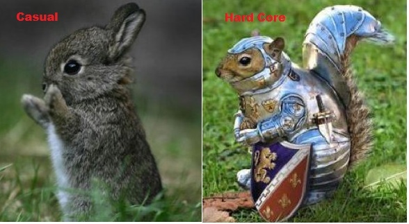 Per a discussion on Twitter, and a suggestion, I decided to take a serious look at what my play style is. We have all heard the terms Hardcore and Casual, but what about the middle ground? Someone suggested that could be Dedicated. I can see that working. Sort of a small, medium and large type of play style. But do they really mean?