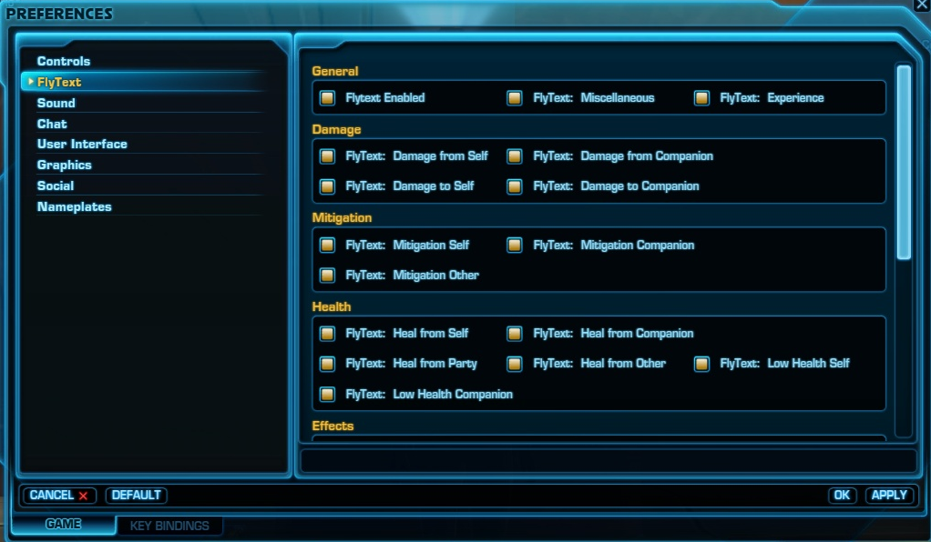 Flytext is another one of those things that players will tailer to their needs, I found the default setting worked quite well and never felt the need to change it.