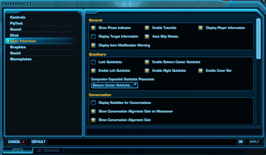 Lock the BAR !!!! Always, always have your quick bars locked. In TOR you WILL use every skill you have and end up pinging them off into space if they’re unlocked. Then you’ll have to search through all your skills and abilities just to find the one that is missing.