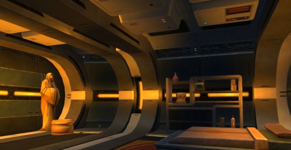 jedi spaceship crew quarters Considering the official description we can expect to use player ships in social gatherings and they will also be customizable. The first thing that crossed my mind when I read this was player housing. What I immediately thought of were trophies you can put up in the ship so when guests come aboard you can boast with that Rancor head. In both KOTOR and SWTOR video there are rooms that felt like crew quarters, with bunk beds and wall decorations and personal tidbits. These are the ship areas I presume will primarily represent your personal space as all player housing should. Player housing also encompasses extra storage, crafting facilities and trading station, but these are topics of their own.